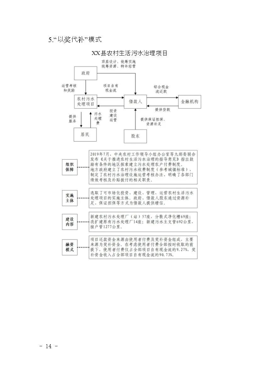 該類建設內容一般無自身收益,建議結合地方實際,統(tǒng)籌做好項目策劃,將公益性建設內容與可產生收益的經營性建設內容結合起來,或利用當地砂石開采收益、礦山開發(fā)收益等項目外收入作補充,實現項目現金流和信用結構總體平衡。對于資源稟賦較差的村鎮(zhèn),地方政府可探索“以獎代補”模式。
