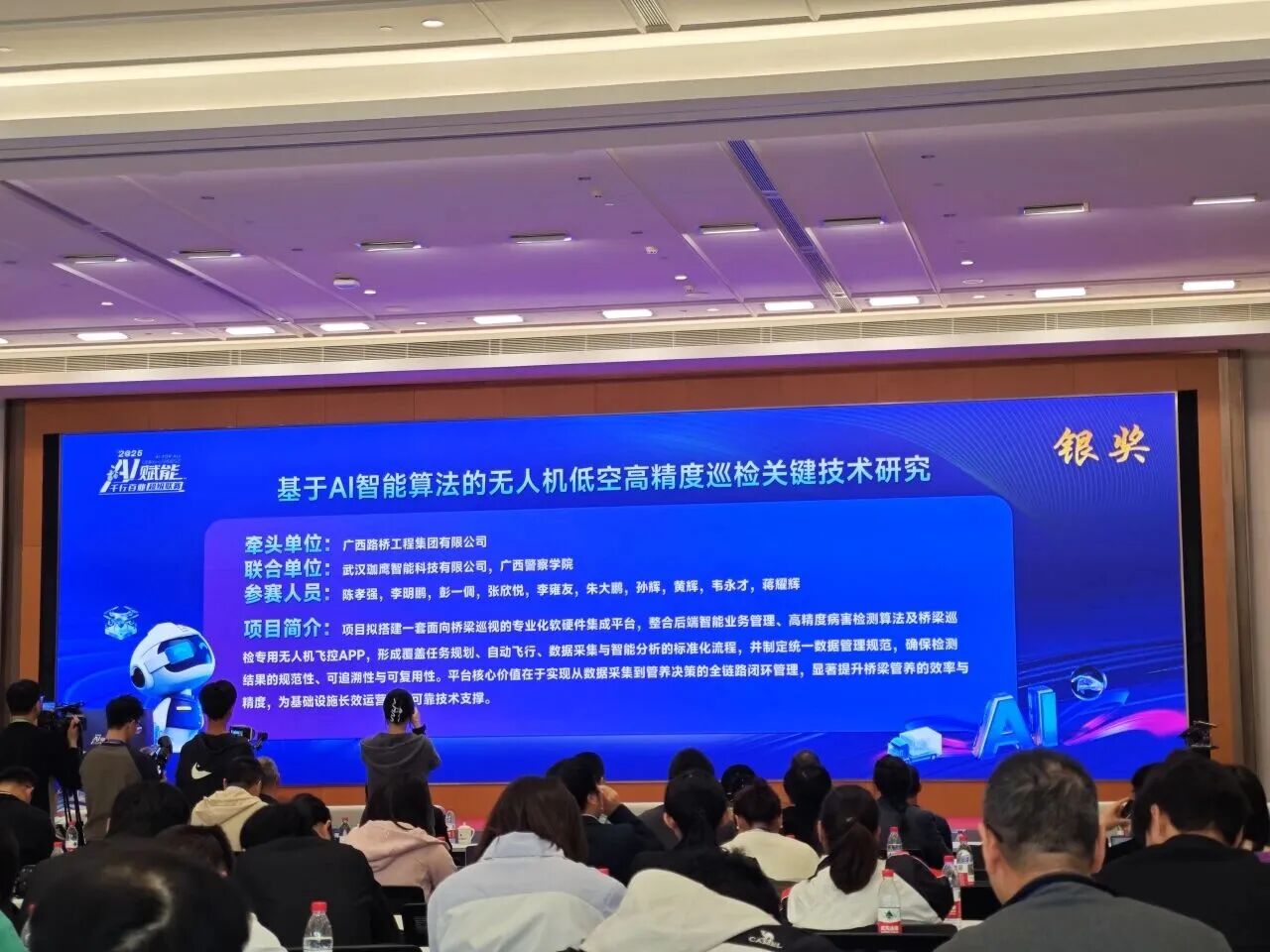 近日,2025年“AI賦能千行百業(yè)超級聯(lián)賽”交通行業(yè)創(chuàng)新大賽在南寧開賽。鼎正參股企業(yè)武漢珈鷹智能科技有限公司與廣西路橋工程集團有限公司聯(lián)合組隊參賽,以綜合評分位列前三的優(yōu)異成績,榮獲2025年“AI賦能千行百業(yè)超級聯(lián)賽”交通行業(yè)創(chuàng)新大賽銀獎。