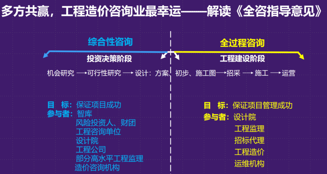 在總書記全生命周期管理思想的指導下,中國的“全咨”已經由“全過程工程咨詢”過渡到“全生命周期工程咨詢”,進入了全咨3.0時代。全咨3.0要點是全咨邊界向前擴展到“招商引資”,向后延伸至“運營維護”。