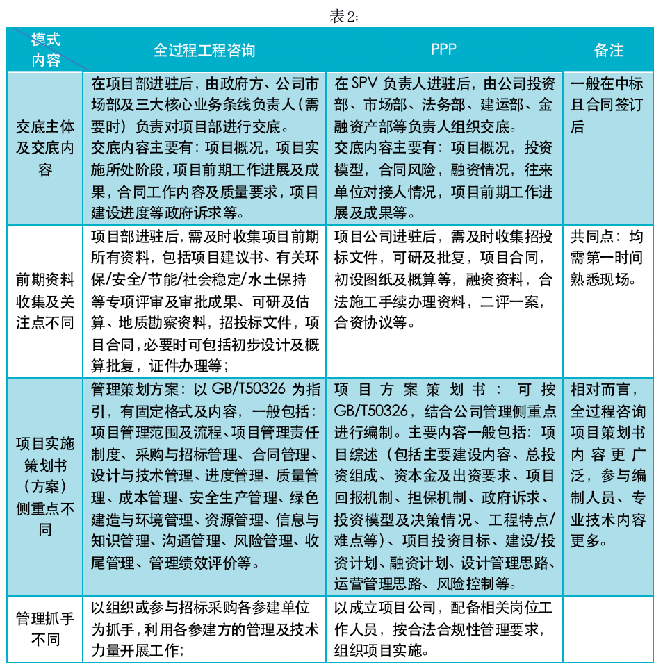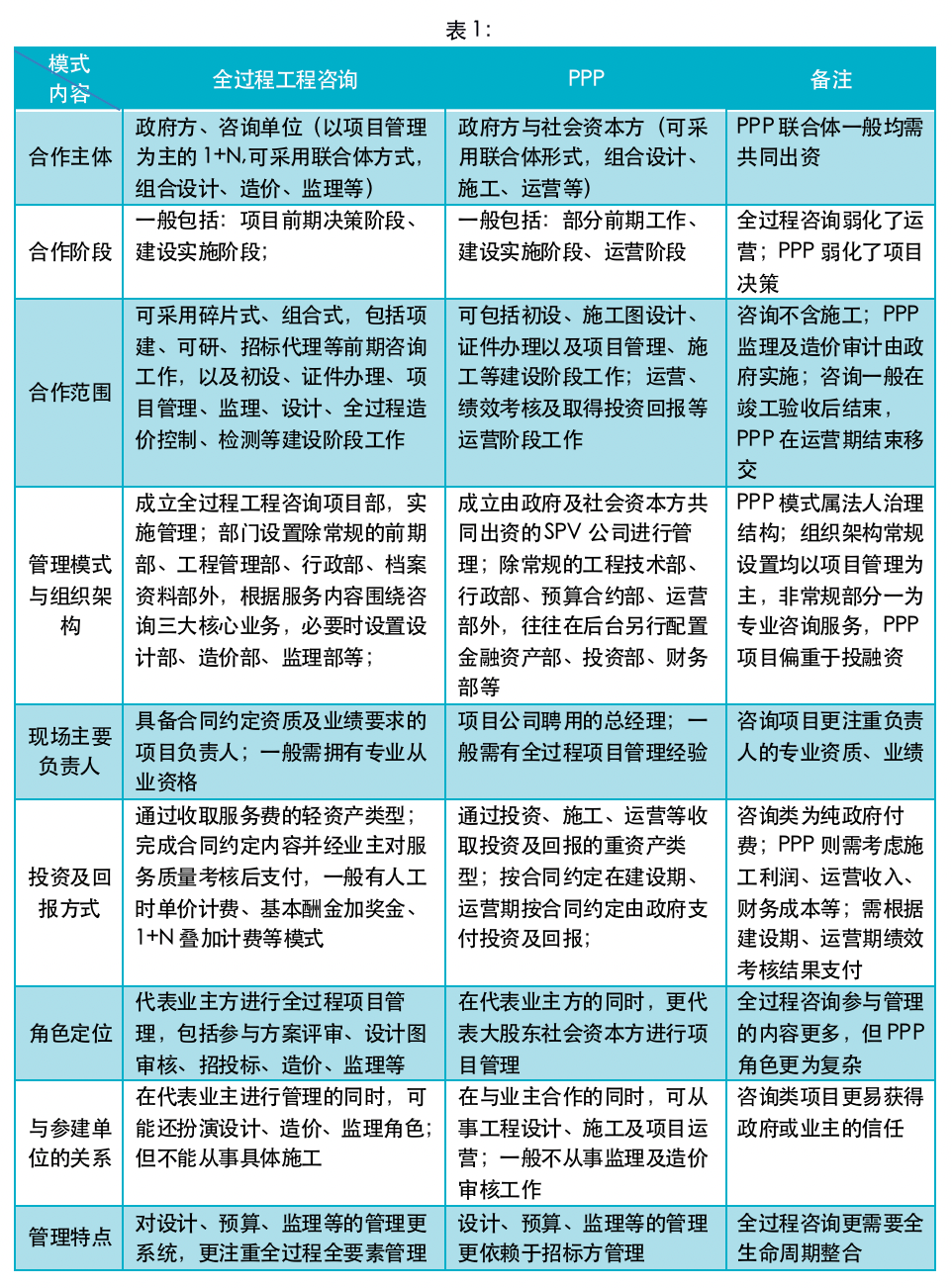 2、全過程咨詢與PPP項目管理要素的差異比較(見表1)