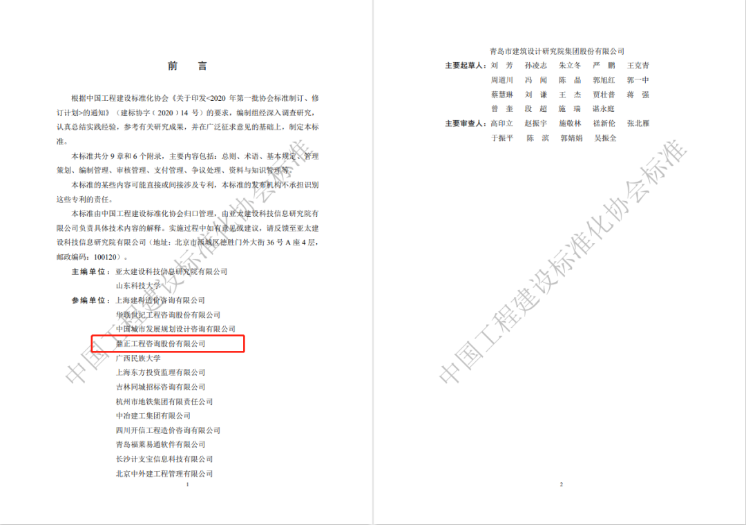 為深入貫徹落實國務院常務會議提出的“在工程建設領域全面推行過程結算”的有關精神與要求,根據中國工程建設標準化協會《關于印發<2020年第一批協會標準制訂、修訂計劃>的通知》(建標協字〔2020〕014號)的要求,由鼎正參與編制的《建設項目過程結算管理標準》(T/CECS 1178-2022),經中國工程建設標準化協會組織審查,現已批準發布,自2023年3月1日起施行。