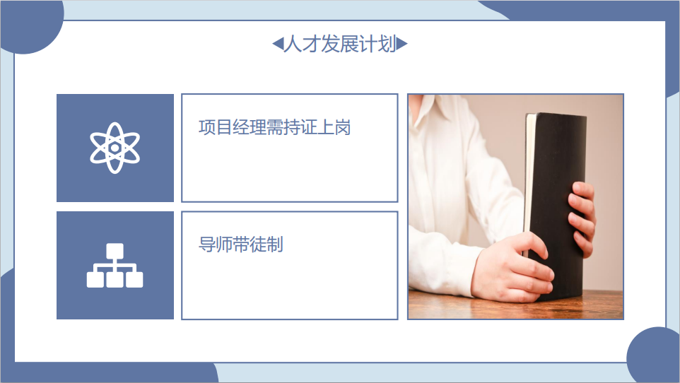 挑戰與機遇,每一次都為有準備的人而來!他從“管理制度、人才發展、項目管控、客戶關系、部門成本、業務發展”六大維度對事業部總經理一職進行了全面闡述。他認為,前浪不息,后浪不止。助理工程師的快速成長是企業發展的關鍵,多年來,公司一直在傳承和發揚“師帶徒”的優良傳統,但由于學員水平參差不齊,導致效果不佳,建議量化師帶徒目標,讓“師帶徒”目標更明、實效更強、成果更顯。