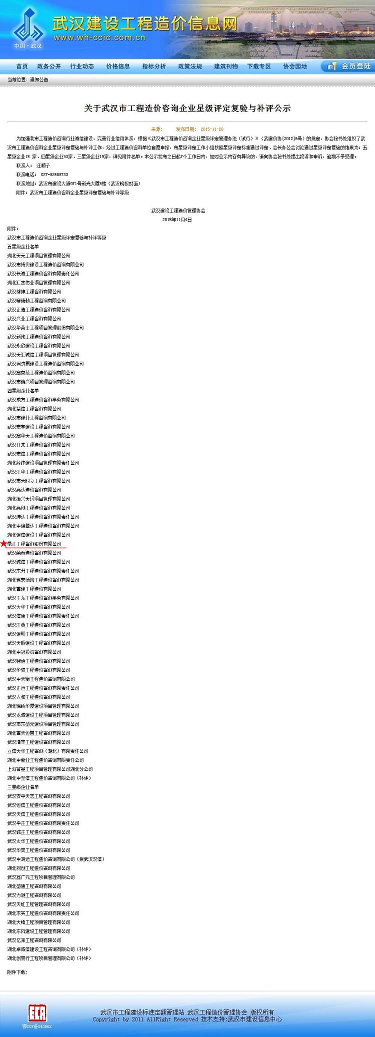 我司獲武漢市工程造價(jià)咨詢企業(yè)星級評定四星級企業(yè)稱號