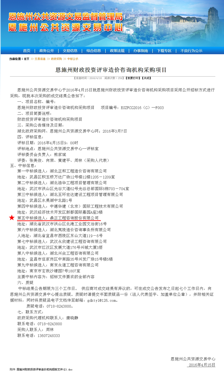 【經(jīng)營(yíng)成果】我司中標(biāo)恩施州財(cái)政投資評(píng)審造價(jià)咨詢機(jī)構(gòu)采購(gòu)項(xiàng)目