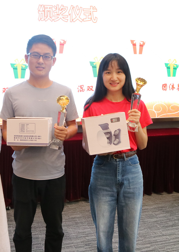 混雙二等獎(jiǎng)獲得者楊峰、胡章蓉合影留念