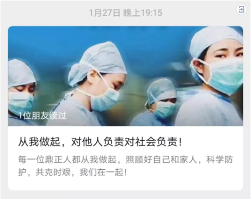 在疫情爆發(fā)之始,鼎正公司領(lǐng)導(dǎo)高度關(guān)注疫情動態(tài),辦公場所每日消毒,周密防控。在封城之時(shí),呼吁全體同事安心在家做好防疫,不給社會增加負(fù)擔(dān)。