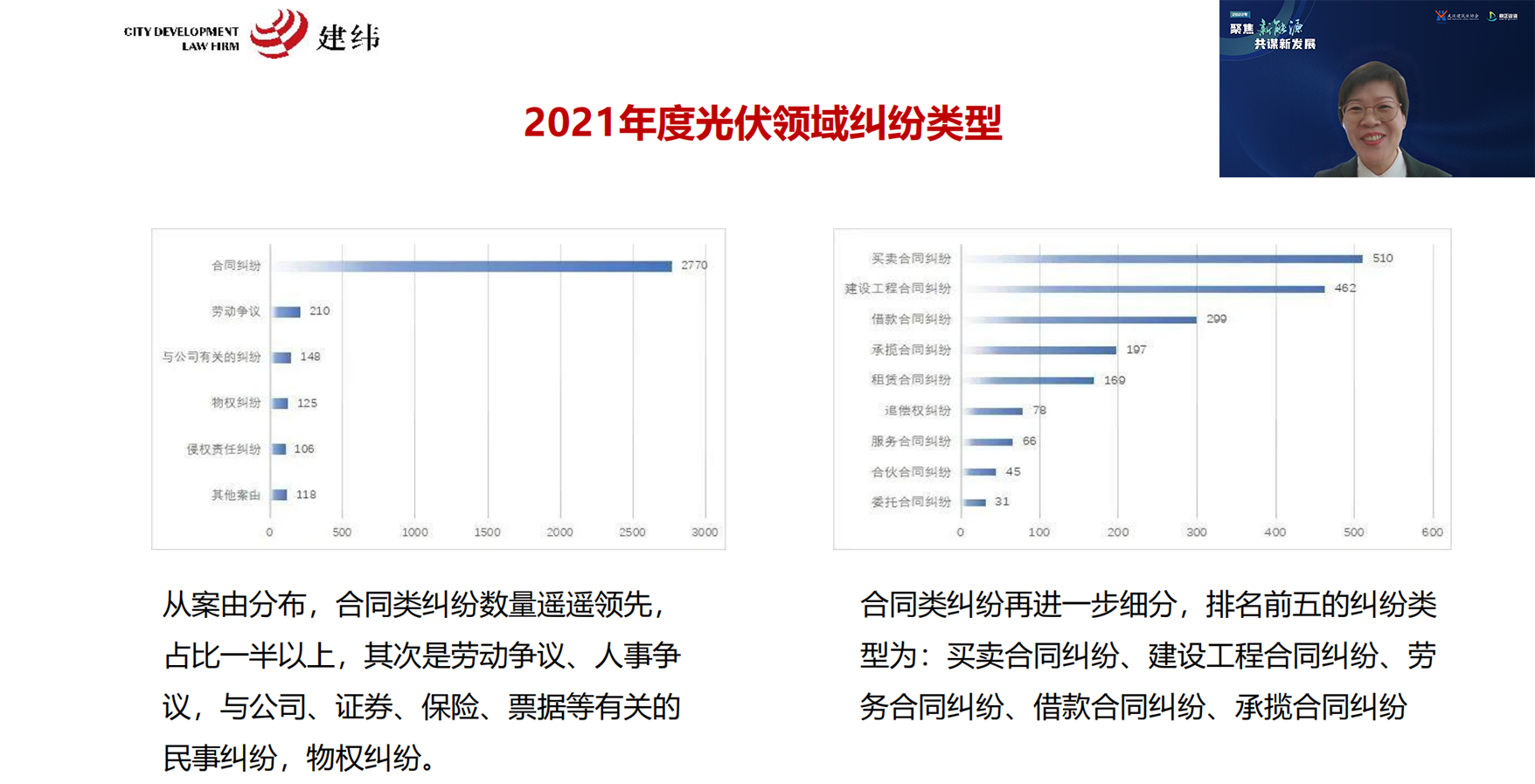 上海建緯(太原)律師事務所張曉玲律師,從糾紛數量、省級地域、糾紛類型三個方面分析了新能源糾紛項目,總結了新能源項目法律風險特點,并以服務案例為主線,講述了企業應如何識別風險、評估風險以及采取相應的措施。